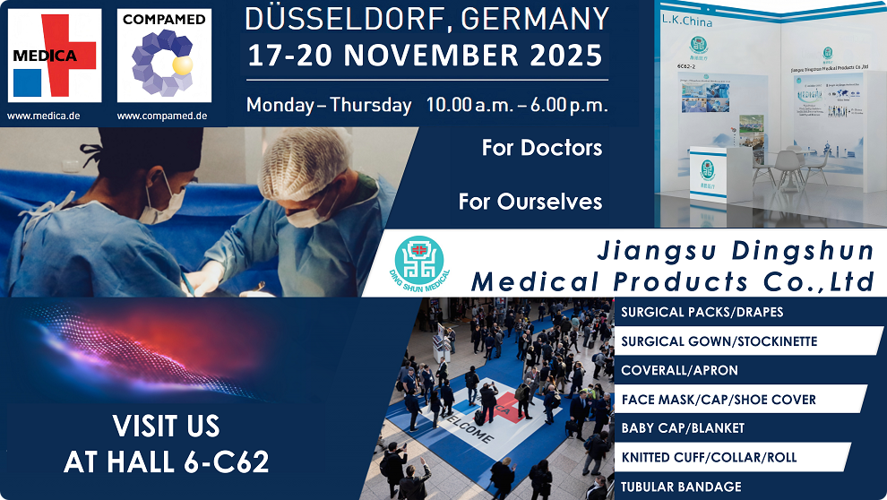 Jiangsu Dingshun Medical Products Co., Ltd. grundades 2002 och är specialiserat på utveckling och produktion av medicinska engångsartiklar. Med början med stickade muddar har Dingshun Medical utökat sitt produktsortiment till att täcka en mängd olika medicinska förnödenheter som t.ex. strumpa, kirurgiska förpackningar och bandage .